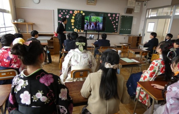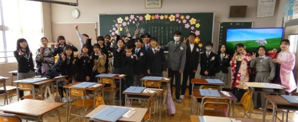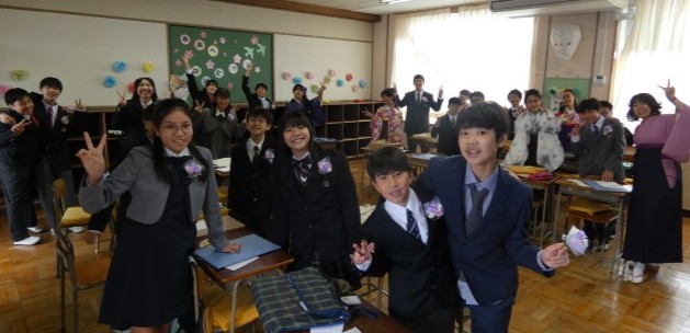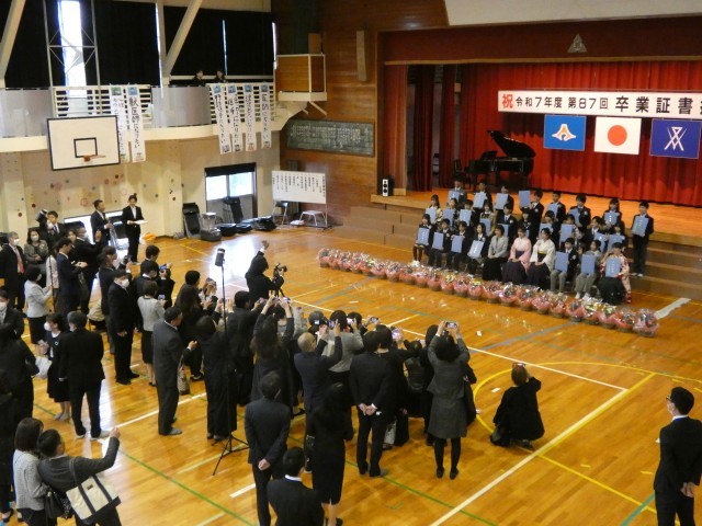 「卒業式」が終わり、卒業生の子供たちは、記念撮影をしたり、教室で楽しく語り合ったりしていました。