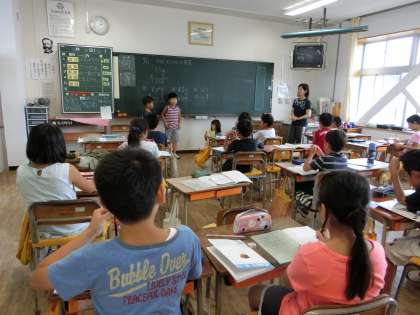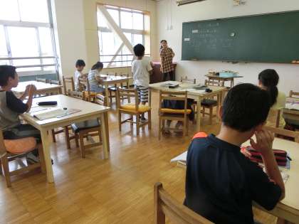 3年生が算数の少人数学習をしていました。「3けた×1けたの筆算」の問題に取り組んで、学習したことが身についたか確かめていました。