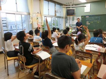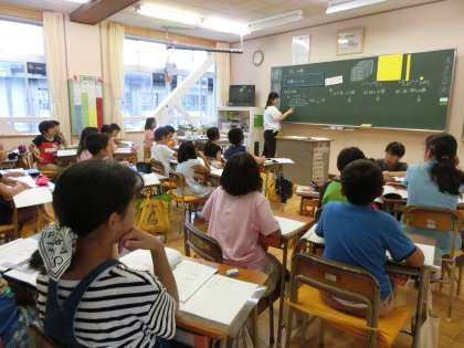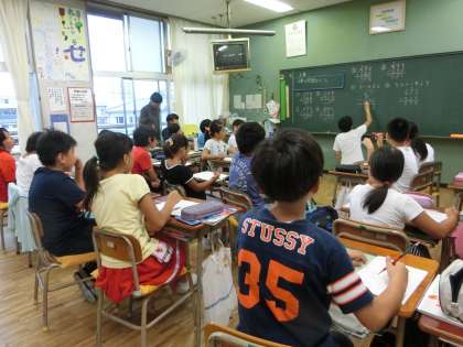1組は小数の仕組みについて図を使って考えていました。2組は小数の計算を練習していました。3組は小数の文章題を解いていました。みんな小数名人を目指しています。