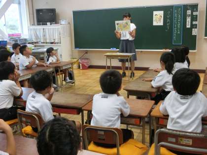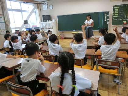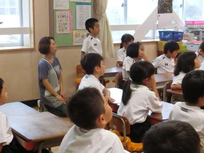 3組で道徳の授業をしていました。「さかあがり」という話を聞いて、最後まで頑張ることの大切さについて考えていました。