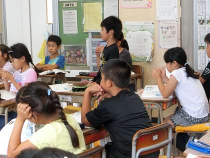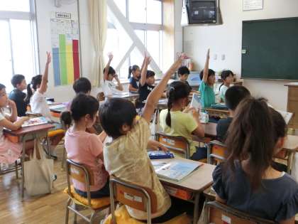 1組で道徳の授業をしていました。「ぼくのしっぱい」というお話を聞いて、自分の心に正直でいることの大切さについて話し合っていました。おじさんと主人公の役割演技を通して、正直に話した時の気持ちを考えていました。