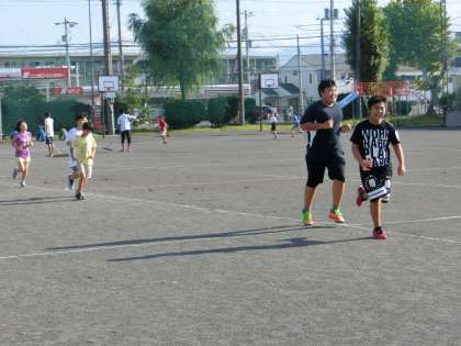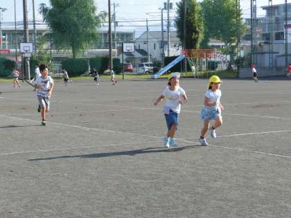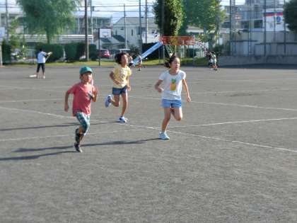 朝の運動場です。昨日の雨も上がり、運動場はちょうど良い湿り加減です。気持ちよさそうに走っています。