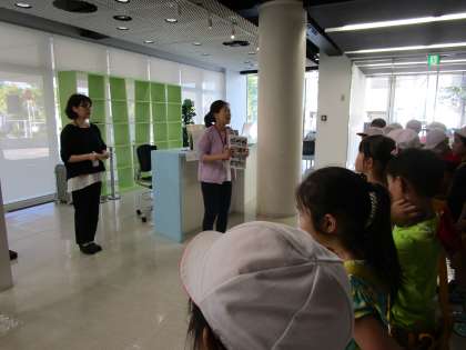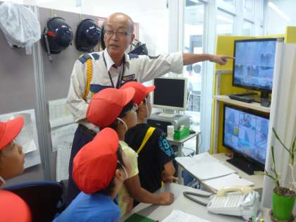 今日はサンウェル沼津へ見学に行きました。係の人から説明をしてもらい、防犯カメラの映像を見せてもらったり、自動販売機のボタンの高さの秘密を教えてもらったりしました。子どもたちは普段遊んでいるときに気になったことや話を聞いてもっと知りたいと思ったことについて積極的に質問をしていました。