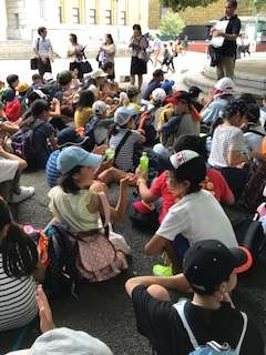 全員集合しました。時間をしっかり守って立派です。先生がほめています。