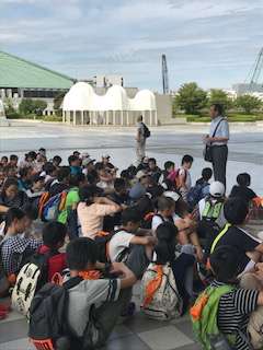 見学の注意を聞きます。