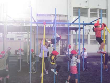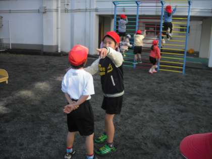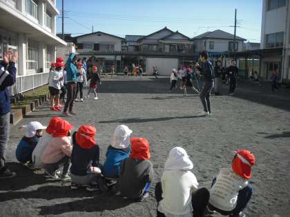 校舎内を見学した後に、中庭で支援学校の友達と交流しました。幼稚部と小学部の友達と鬼ごっこや大縄で楽しく遊ぶことができました。たくさんの笑顔が見られました。
