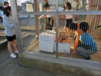 今朝も4年生がチョコの世話をしていました。昨晩からの強い風のため、小屋の中に餌が散乱していたようです。当番さんがきれいにしてくれました。ありがとうございます。