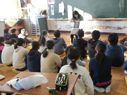 6年生も静かにじっくりとお話に耳を傾けていました。先生が読んでいるクラスもありました。教室は冷え込んでいますが、みんなで一緒にお話を聞いているとあたたかい気持ちになってくるようです。