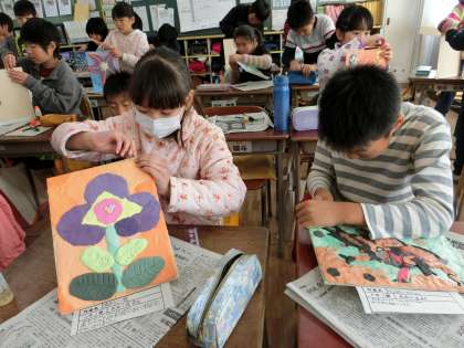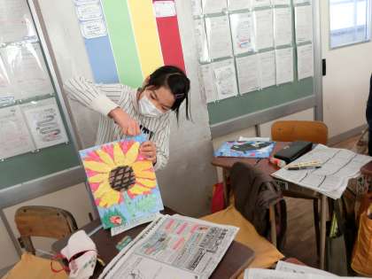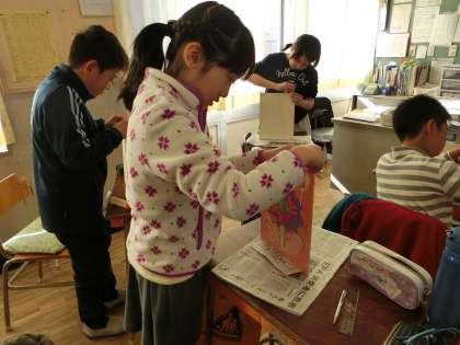作品が完成した人から、仕上げにヒートンを付けていました。薄い板にヒートンを取りつけることはとても難しそうでしたが、みんながんばっていました。壁に飾ると楽しそうです。