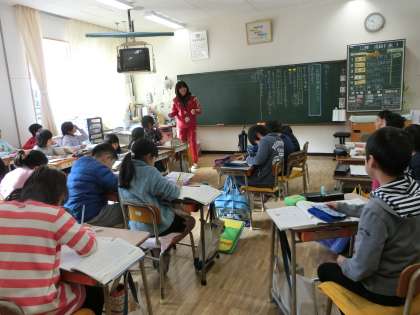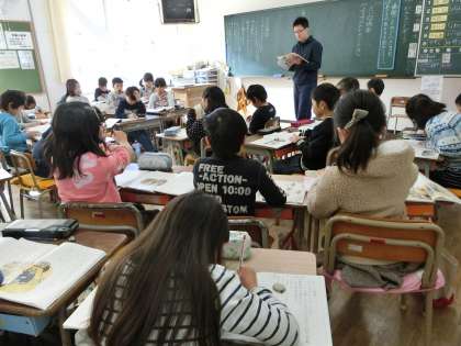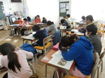 2年生が国語の時間に「かさこじぞう」のお話を読んでいました。じさまとばさまの行動や会話から、様子を思い浮かべたり気持ちを考えたりしていました。長い文章をじっくりと読む力がついてきています。