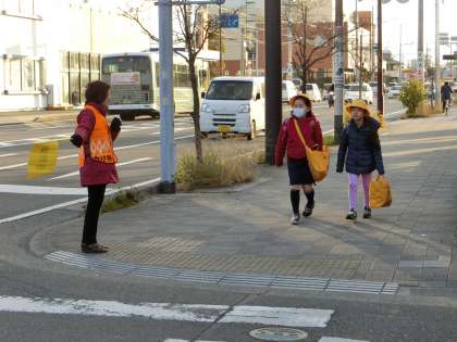 年末の交通安全運動に合わせて、地域の皆様が朝の交通指導を行ってくださいました。学校周辺の交差点に朝早くから立って、子どもたちの様子を見てくださいました。