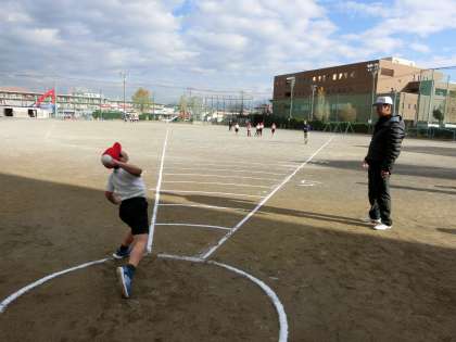 みんな自分の記録より1mでも遠くへ飛ばそうと、一生懸命投げました。