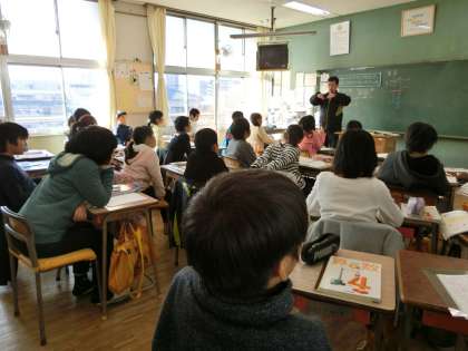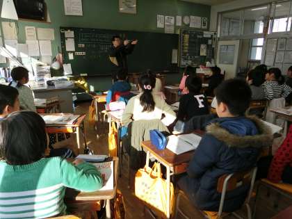4年生が算数の時間に小数のわり算の仕組みを考えていました。先生が紐を4等分して説明していました。実物を見て考えることは分かりやすいと思いました。