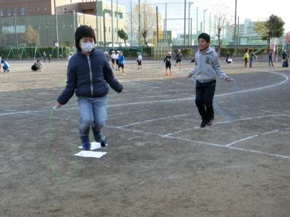 どの学年も朝から大勢の人が出て縄跳び運動に取り組んでいます。