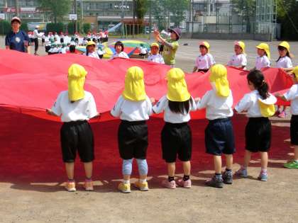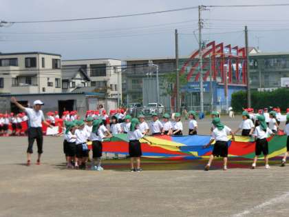 1・2年生がダンスの練習をしていました。バルーンが大きく広がってきれいです。