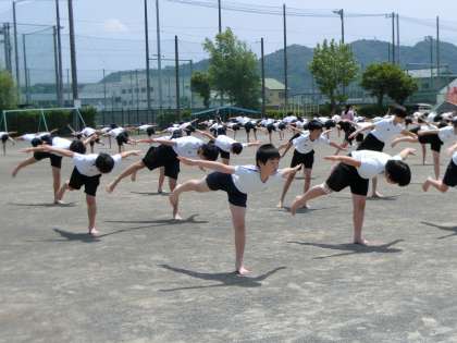 5・6年生が組体操の練習をしていました。真剣に取り組んでいました。