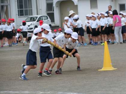 3・4年生が団競「ハリケーン」の練習をしていました。どのチームも声を掛けあい、気持ちを合わせて走っていました。