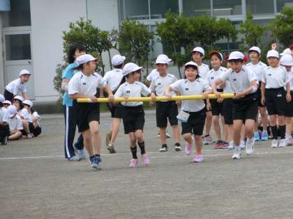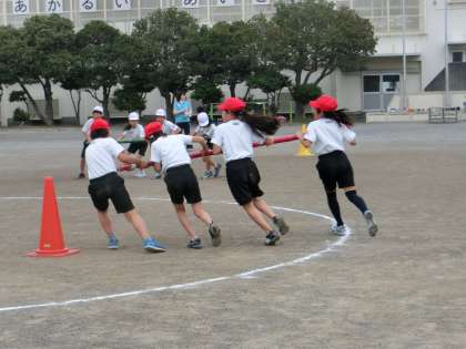 3・4年生が団競「ハリケーン」の練習をしていました。どのチームも声を掛けあい、気持ちを合わせて走っていました。