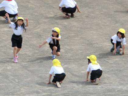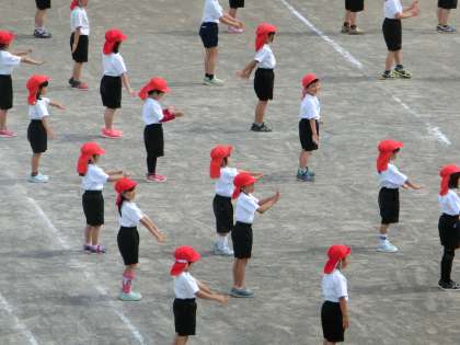 1年生と2年生がダンスの練習をしていました。音楽に合わせて体を動かしていました。