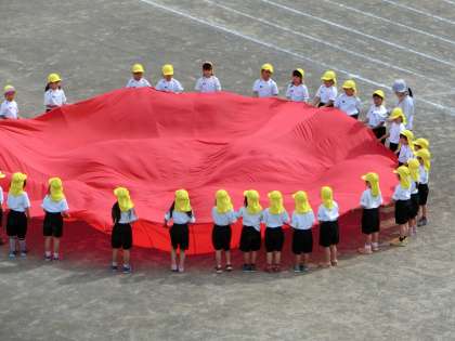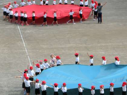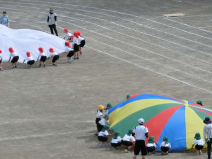 バルーンが上手に広がりました。リズムに合わせて、バルーンが回ったりふくらんだり。