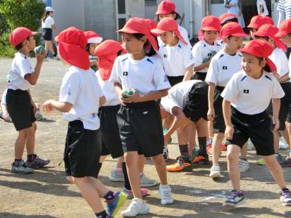 朝練習 1・2年生玉入れ