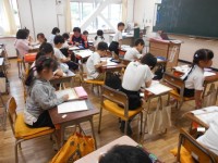 2年生が国語の時間に説明文を読んでいました。いくつの形式段落で作られているのか、本文を読んでまとまりを探していました。手掛かりは、一文字下がりを見つけることだそうです。友達と確かめながら数えていました。
