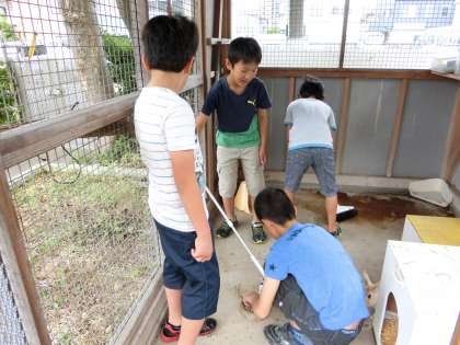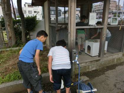 今朝も4年生のうさぎ当番さんがチョコの世話をしていました。掃除をして、水を替えて、餌をやって。毎日、ありがとうございます。チョコはきれいになるまで、おとなしく待っていました。
