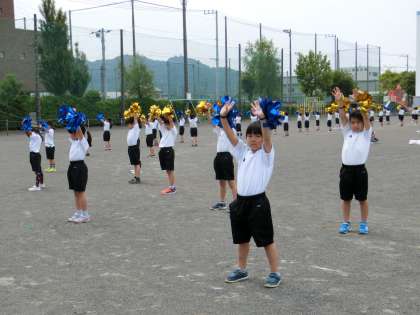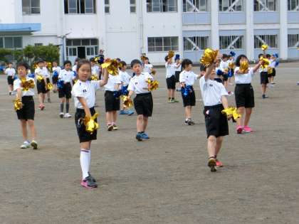 1・2年生がダンスの練習をしていました。明日が本番。総仕上げです。