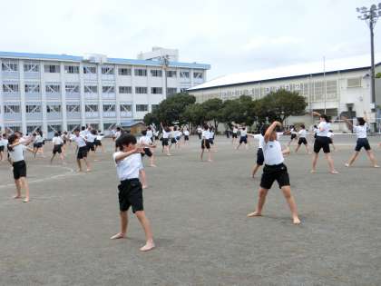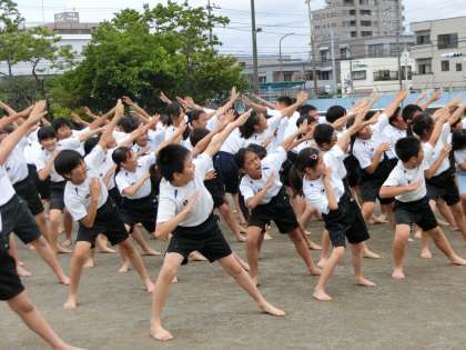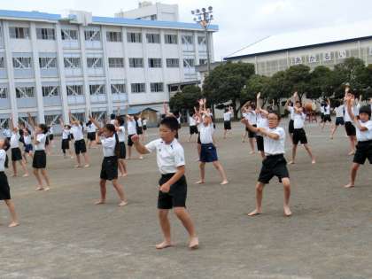 5・6年生が組体操とソーラン節の最終リハーサルをしていました。本番を明日に控え気合いが入っています。