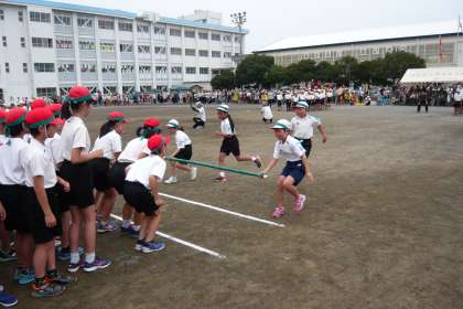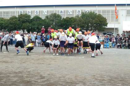 運動会 5 56年団競「足もと注意!頭上注意!」