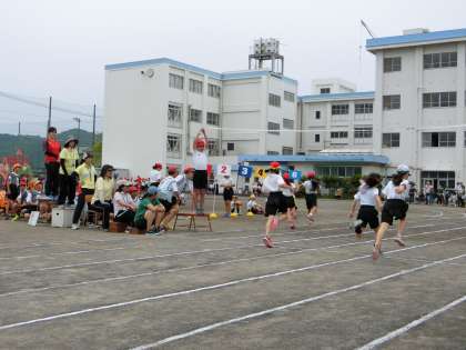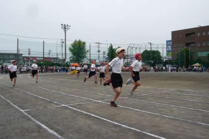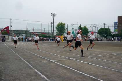 プログラム8番は5年生の力走です。5年生は150mを走ります。長い距離を最後まで力を抜かずに走り切っていました。