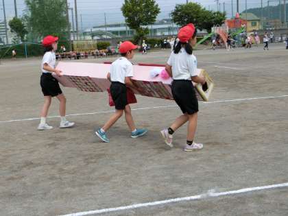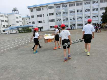 運動会が終わりました。5・6年生が最後の仕事、片付け作業をしています。最後の最後までありがとうございます。