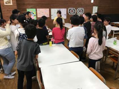 食事係さんが仕事の振り返りをしています。よく頑張りました。明日もよろしくお願いします。
