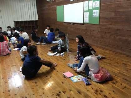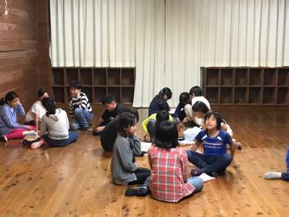 班会議をしています。今日の活動を振り返って、明日につなげます。