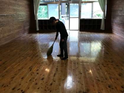 清掃活動が始まりました。合言葉は、来た時よりも美しくです。