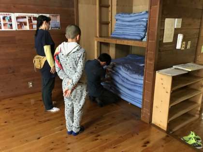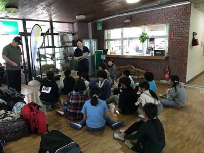 清掃が終わりました。生活係さんが集合しました。このあとの点検について説明を聞いています。合格するでしょうか。