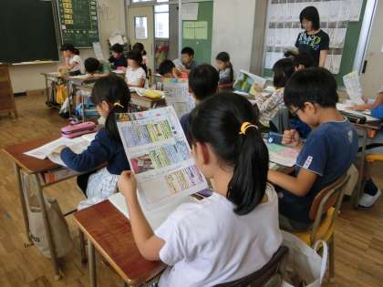 3年生がスーパーマーケットを見学して聞いたことや分かったことを新聞にまとめました。今日は、その新聞を読み合ってそれぞれの工夫を見つけていました。