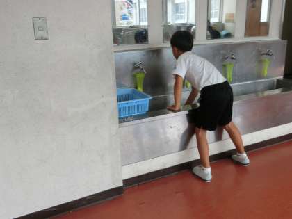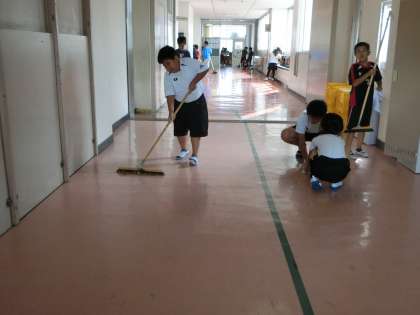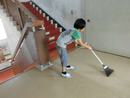 中学年、高学年は一人で働いている人も大勢います。分担場所を責任をもってきれいにしています。