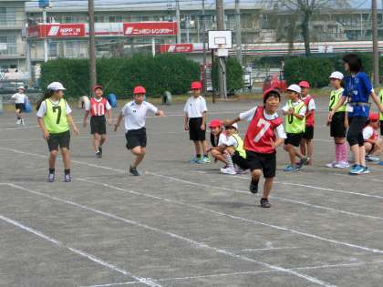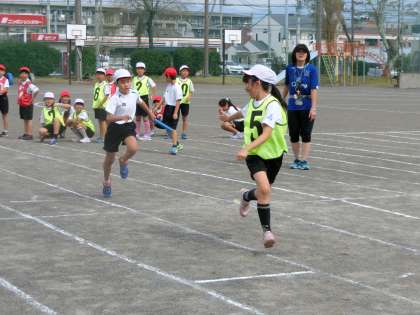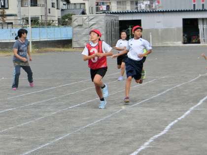 4年生がリレーの練習をしていました。バトンパスやリードのタイミングを工夫して走っていました。前にタイムを計ったときよりも20秒程度速くなったそうです。本番に向けてがんばっています。