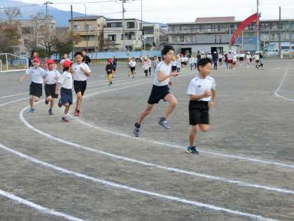 体育委員さんの合図で一斉に走り出しました。1周、200mを全力で走っていました。