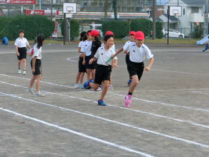 朝の運動場 バトンパス