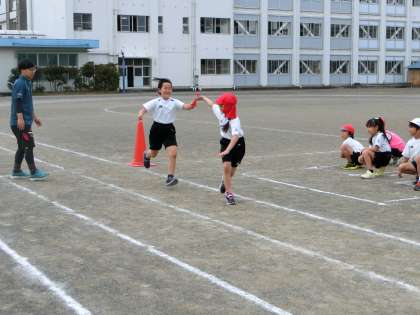 今まで体育の授業や朝運動で練習を積み重ねてきました。精一杯走る友だちに、たくさんの声援を送っていました。