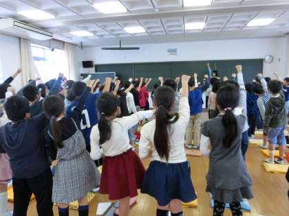 リコーダーや打楽器が入って、曲を盛り上げていました。全員の心を合わせて歌っていました。発表の日が楽しみです。