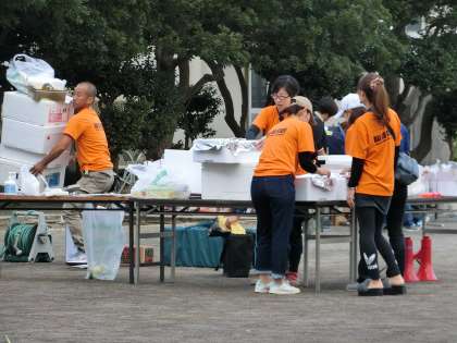 子どもたちが授業をしている間、運動場ではおいでな祭の準備が着々と進んでいます。