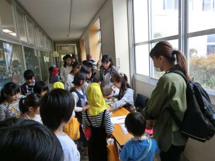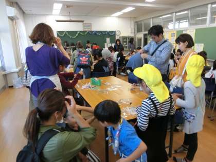 5年生の保護者の皆さんは研修室で、キャンディレイとブレスレットのコーナーを開いてくださっていました。大人気で、研修室は、人、人、人、でした。