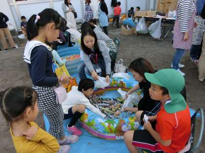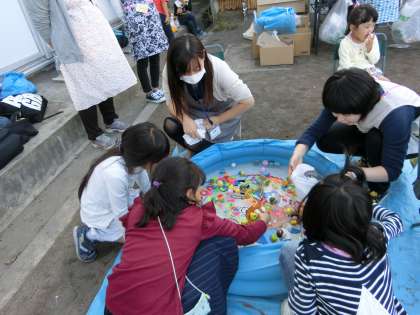 3年生保護者の皆さんは、すくうゲームを担当してくださっていました。すくうものは、スーパーボール、お菓子、ぶかぶかおもちゃです。みんなたくさんすくおうと、がんばっていました。