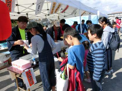 おやじの会の射的もまだまだ行列です。焼きそば、みかんも完売しました。