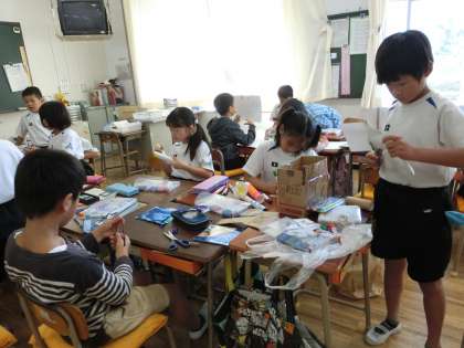 7日(水)です。2年生がふれあい集会の準備をしていました。相談しなが進めていました。
