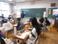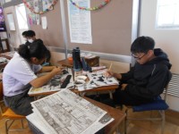 6年生が、席書コンクールの課題に取り組んでいました。今年の課題は、「思いやり」です。ひらがなが入った字配りの難しい4文字です。ひらがなの字形を整えるのに苦労していました。