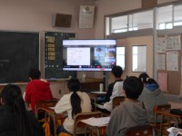 6年生がゲストティーチャーを招いて墨絵を体験しました。今日は6年2組です。